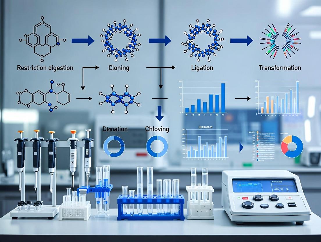 This document details the critical components and standardized protocols for Golden Gate assembly, a scarless, restriction-ligation-based method for seamless assembly of multiple DNA fragments. Its efficiency and fidelity make it indispensable for synthetic biology, pathway engineering, and modular vector construction in drug development.