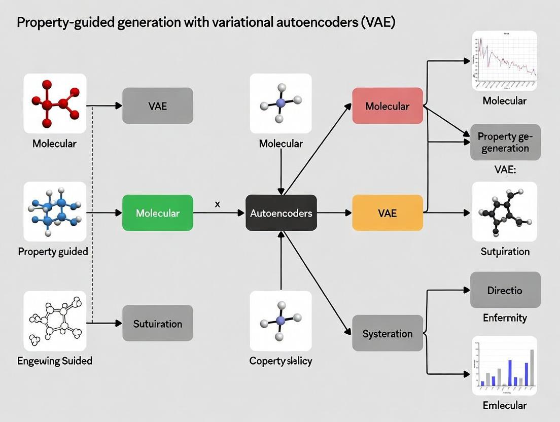 y_pred = f_property(z).Objective: Generate novel molecules with optimized target properties. Methodology: