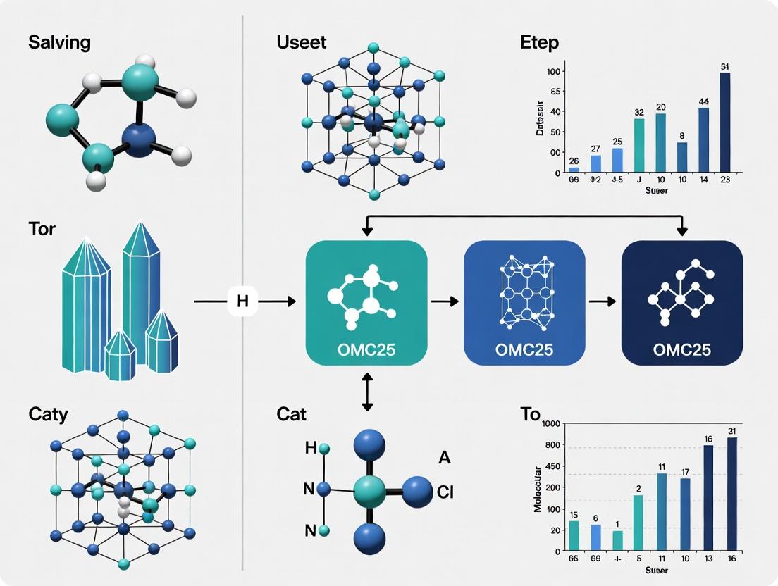 The OMC25 dataset represents a powerful, open-access foundation for accelerating the discovery and design of functional molecular crystals. By mastering its foundational data, integrating it into robust methodological pipelines, proactively troubleshooting computational challenges, and rigorously validating outcomes, researchers can significantly enhance the efficiency of crystal structure prediction and materials property estimation. The future of OMC25 lies in its expanding integration with active learning loops, real-time synthesis data, and multi-scale modeling, promising to bridge the gap between in silico design and experimental realization. This will directly impact critical areas such as the development of more bioavailable pharmaceutical polymorphs, novel organic semiconductors, and high-energy-density materials, fundamentally advancing biomedical and industrial research.